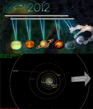 En Diciembre de 2012, nuestro Sol central estará en perfecto alineamiento con el centro de la galaxia (la Vía Láctea). Literalmente, nuestro sistema solar en su totalidad atravesará el eje de la galaxia, quedando el Centro de la galaxia y nuestro Centro Solar sobre una misma línea vertical.