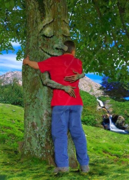 6. Cuando llega al árbol y lo envuelve en un gran abrazo, las energías radiantes de ambos se unen y es probable que durante unos instantes se pierda en la dicha de la unión.
