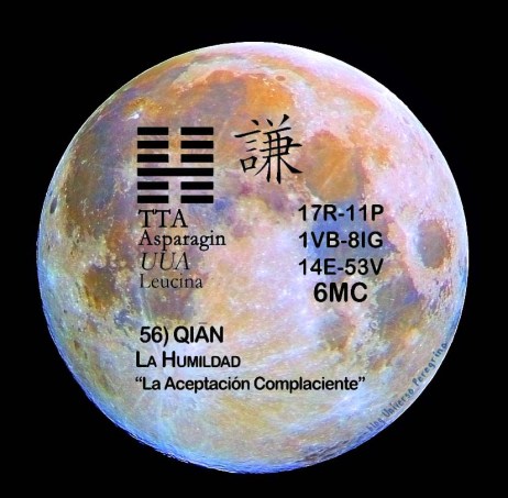 El ideograma de este hexagrama es CHIEN con primer acento y significa humilde, modestia. Humildad. El 15º de los 64 hexagramas del Libro de los Cambios. También significa insuficiencia.